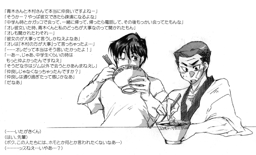 オレはなんだかんだゆって鷹村が・・・好きだあいつすごいもん尊敬してる という話は、青木村同士でしかできないとおもいます。